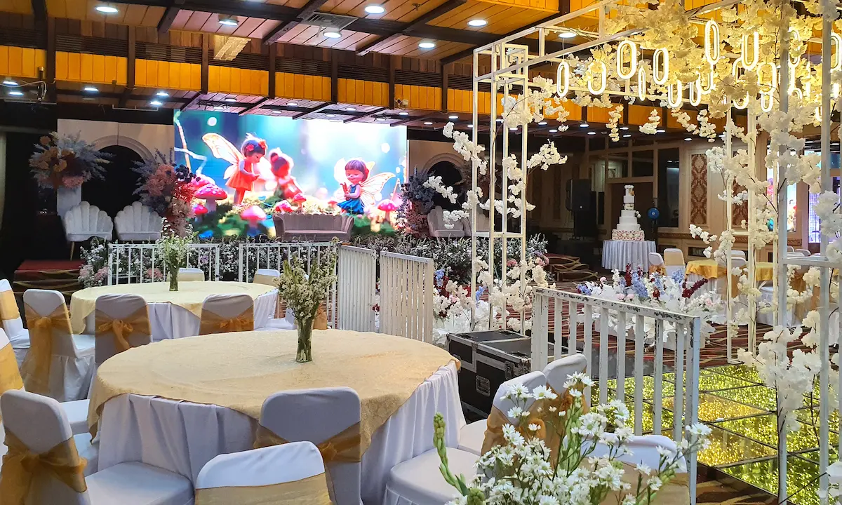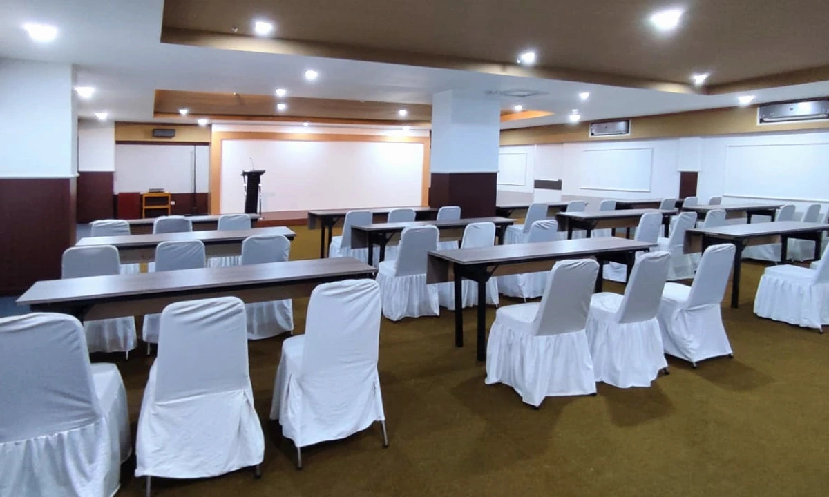 Theatre: 150 pax, Classroom: 100 pax, Round Table: 80 pax, U-Shape: 75 pax, Dimension: 7 m x 8 m.